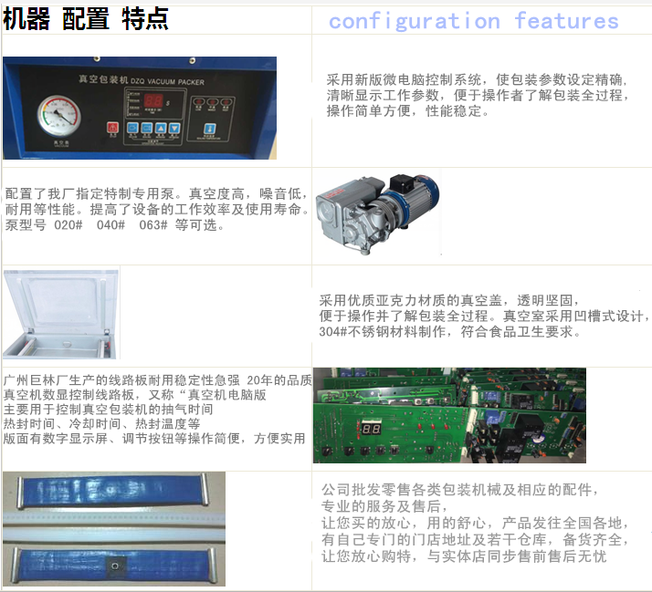 DZQ-400外殼為不銹鋼制作。 控制面板采用觸模式新型按鈕。 事先可預(yù)編入包裝物所要的技術(shù)參數(shù),工作時只需按下真空室蓋,即按自動程序完成真空包裝的全過程。 本機體積小,適合臺式工作,靈活方便。 |