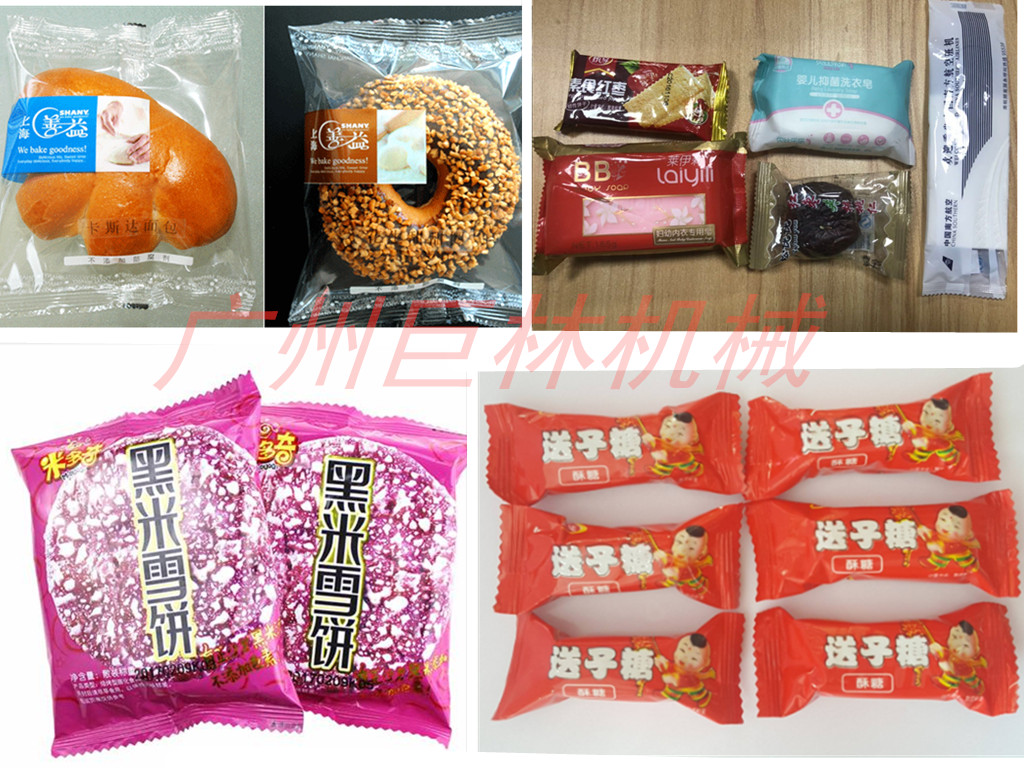 適合于餅干、米通、雪餅、蛋黃派、巧克力、面包、方便面、月餅、藥品、日用品、工業(yè)零件、紙盒或托盤等各類有規(guī)則物體的包裝。